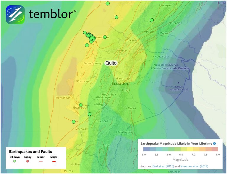 Earthquake Ecuador Map. Filter quakes: all magnitudes | 2.0+ | 3.0+ | 4.0+ | 5.0+ | 6.0+ | | 8 hours | 24 hours | 2 days | 7 days | 30 days It had a magnitude of 7.8 and struck 71 kilometers (44 mi) south-southwest of Esmeraldas, at a depth of 21 km
